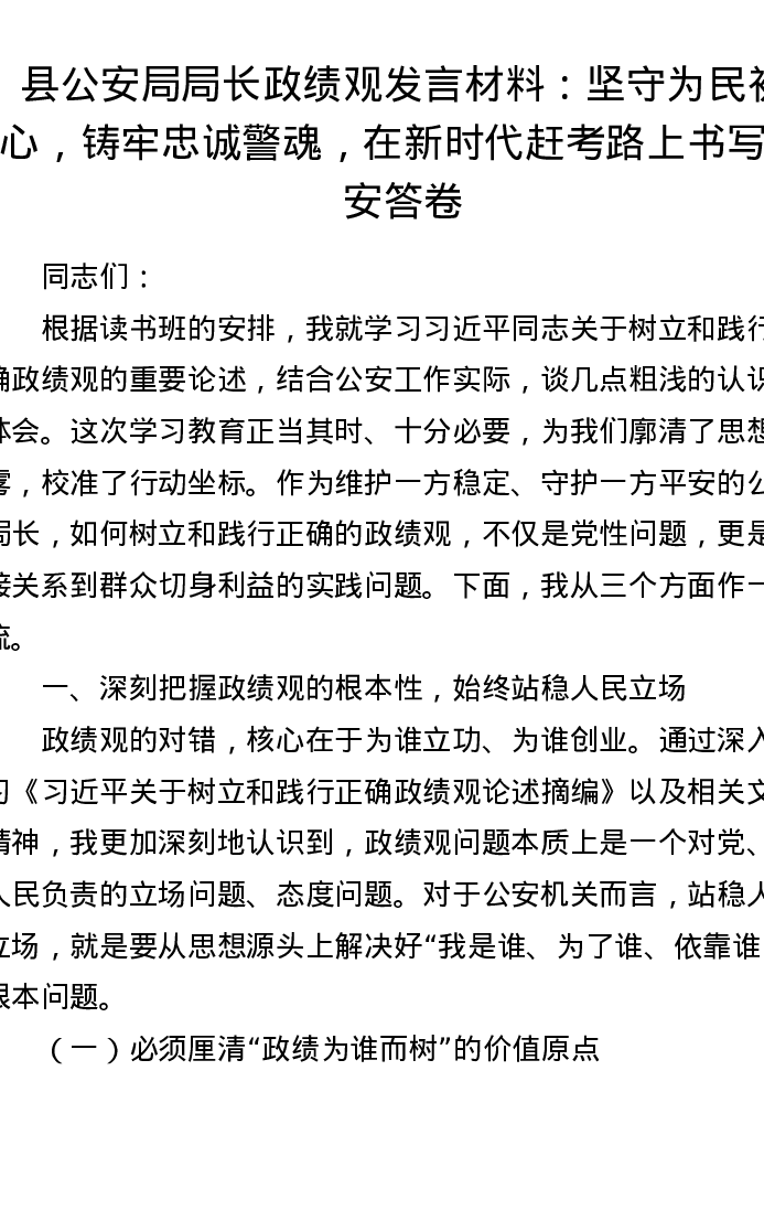 县公安局局长ZJG发言材料:坚守为民初心,铸牢忠诚警魂,在新时代赶考路上书写平安答卷