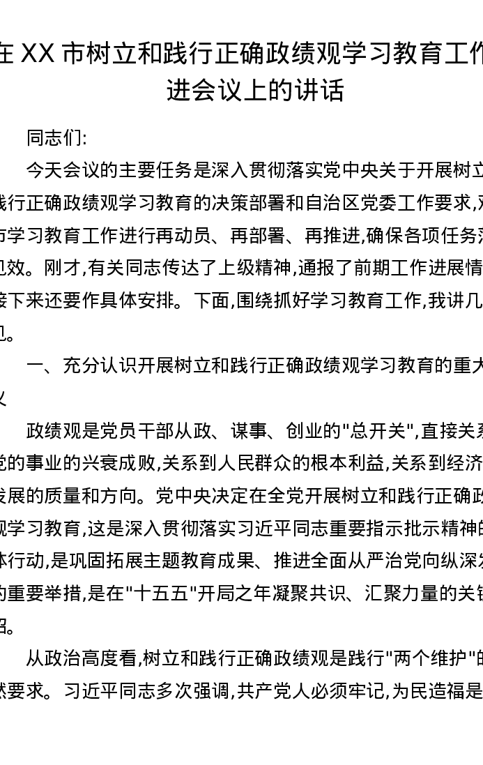 在XX市树立和践行正确ZJG学习教育工作推进会议上的讲话