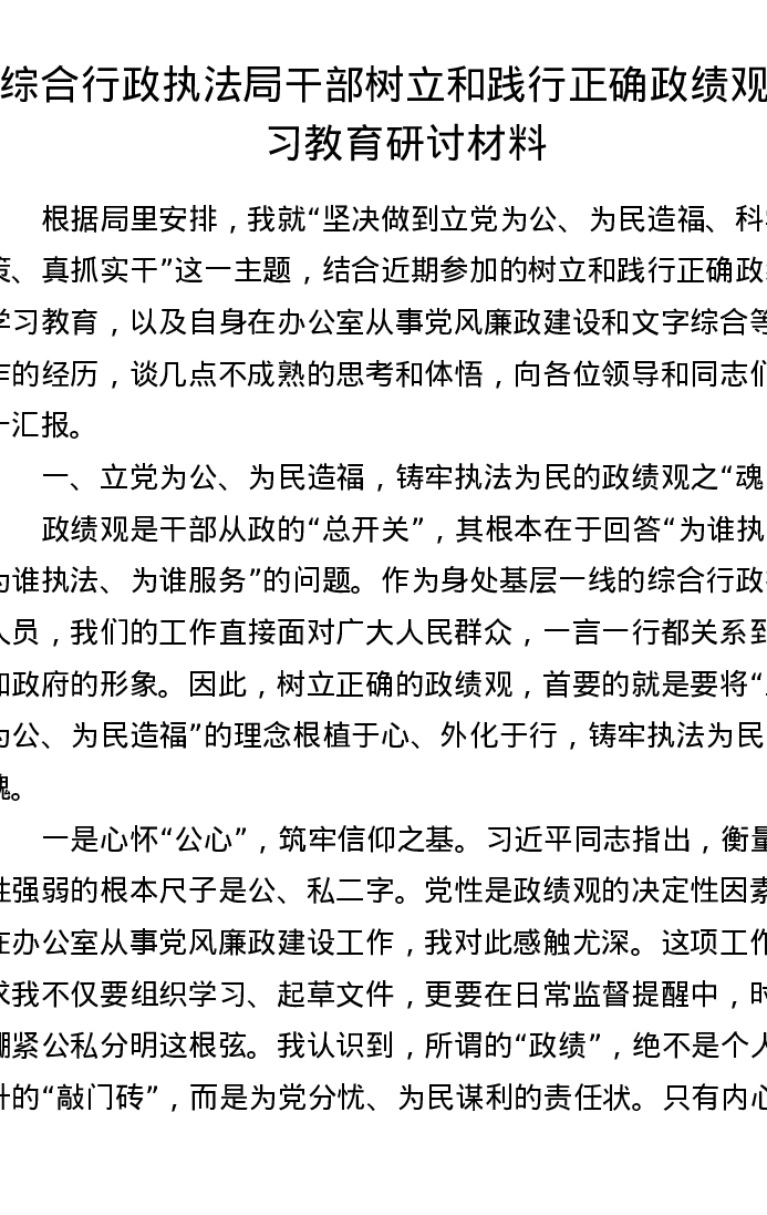 综合行政执法局干部树立和践行正确ZJG学习教育研讨发言材料