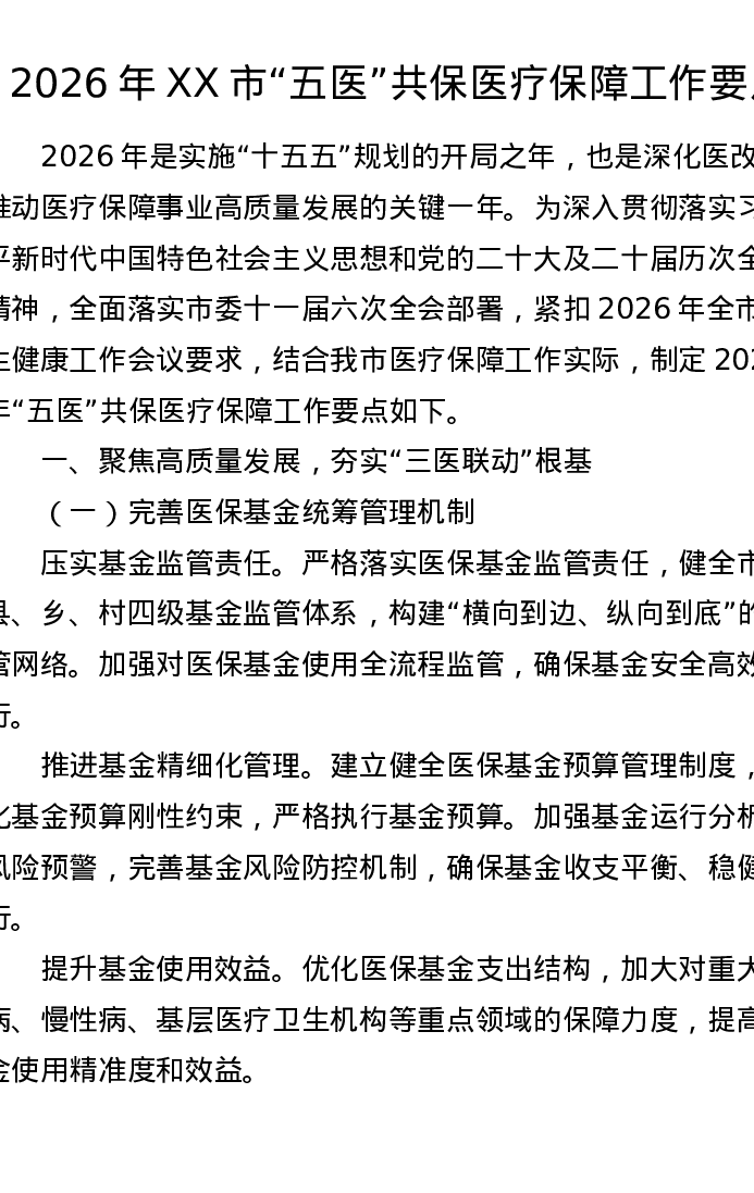 2026年XX市五医共保医疗保障工作要点