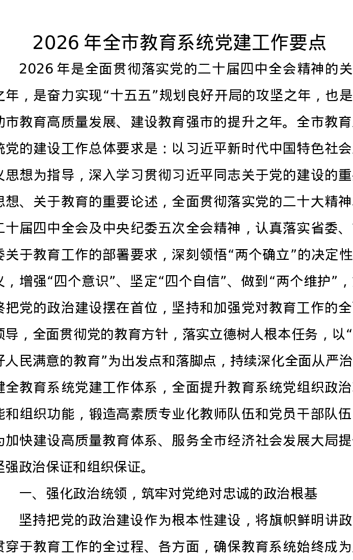 2026年全市教育系统党建工作要点