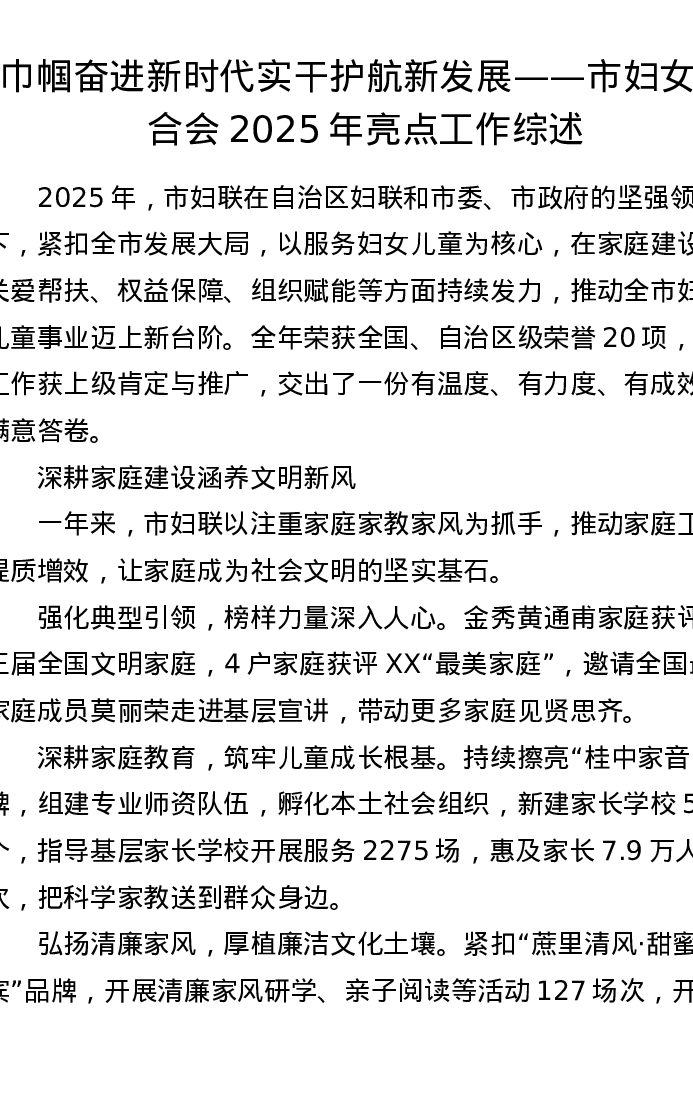 巾帼奋进新时代 实干护航新发展 ——市妇女联合会2025年亮点工作综述