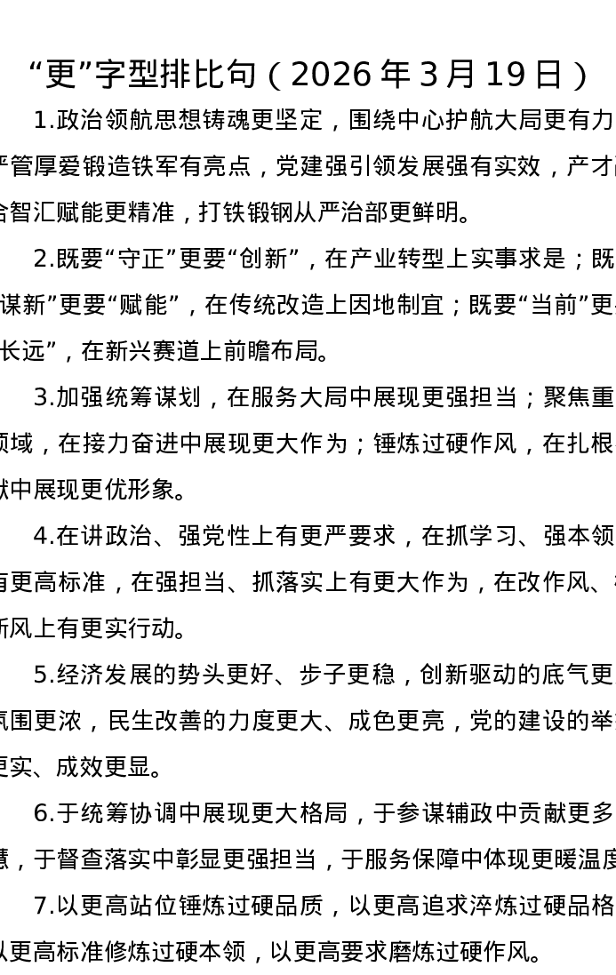 更字型排比句(2026年3月19日)