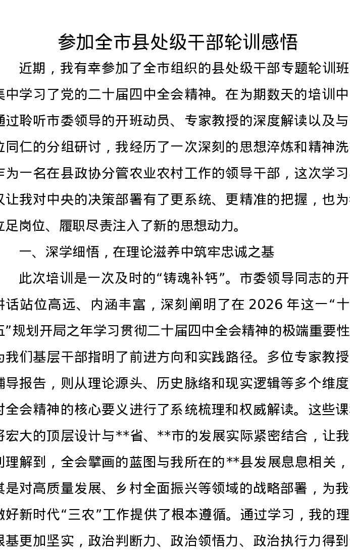 参加全市县处级干部轮训感悟