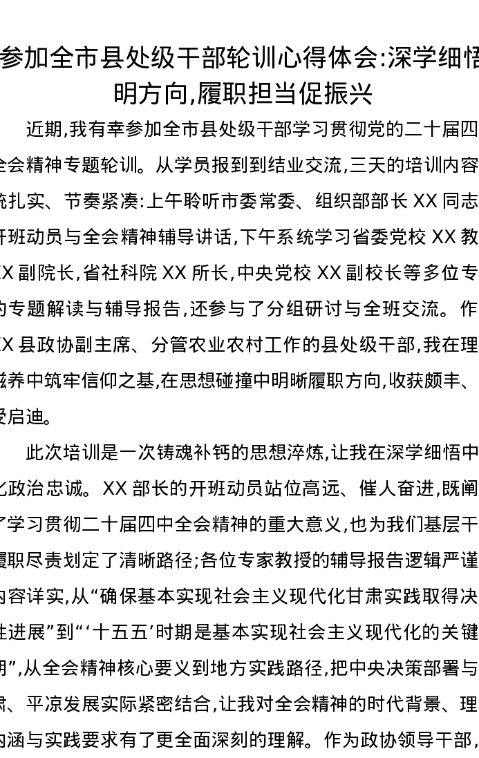 参加全市县处级干部轮训心得体会深学细悟明方向,履职担当促振兴