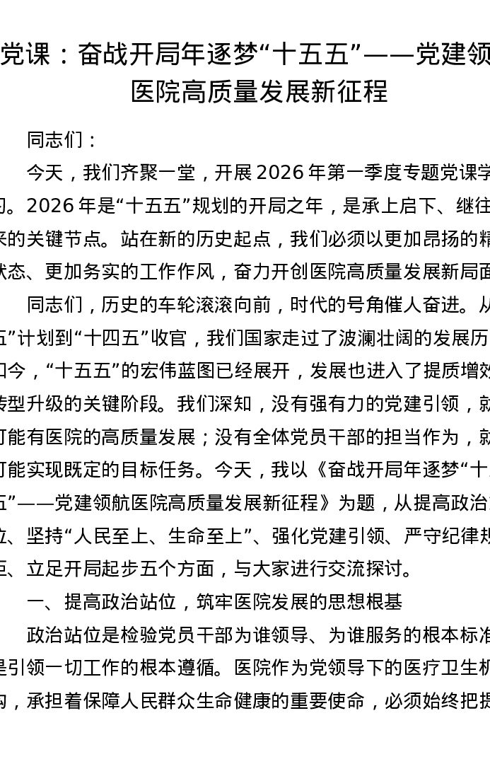 党课:奋战开局年逐梦 十五五—— 党建领航 医院高质量发展新征程