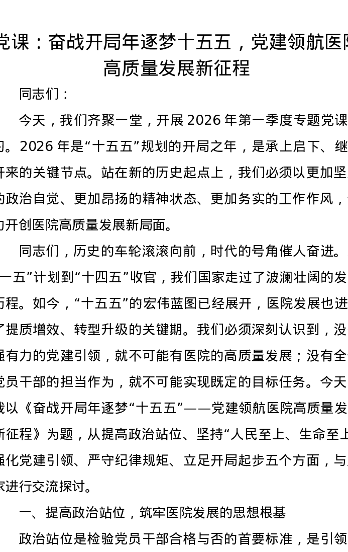 党课:奋战开局年逐梦十五五,党建领航医院高质量发展新征程