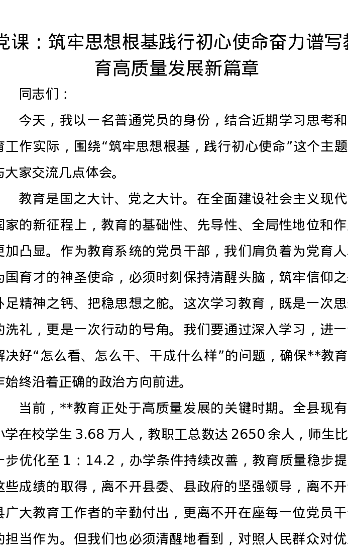 党课:筑牢思想根基 践行初心使命 奋力谱写教育高质量发展新篇章