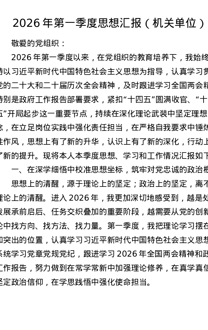 2026年第一季度思想汇报(机关单位)