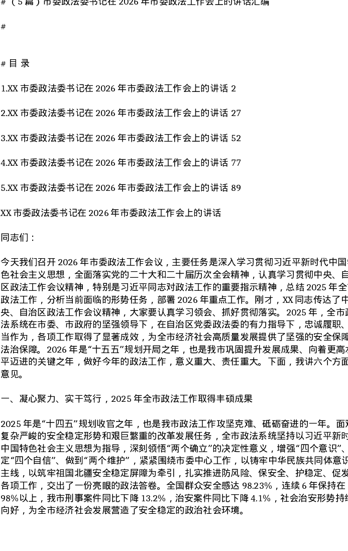 汇编:市委政法委书记在2026年市委政法工作会上的讲话5篇