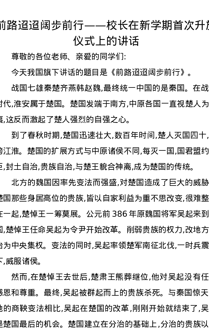 前路迢迢阔步前行——校长在新学期首次升旗仪式上的讲话