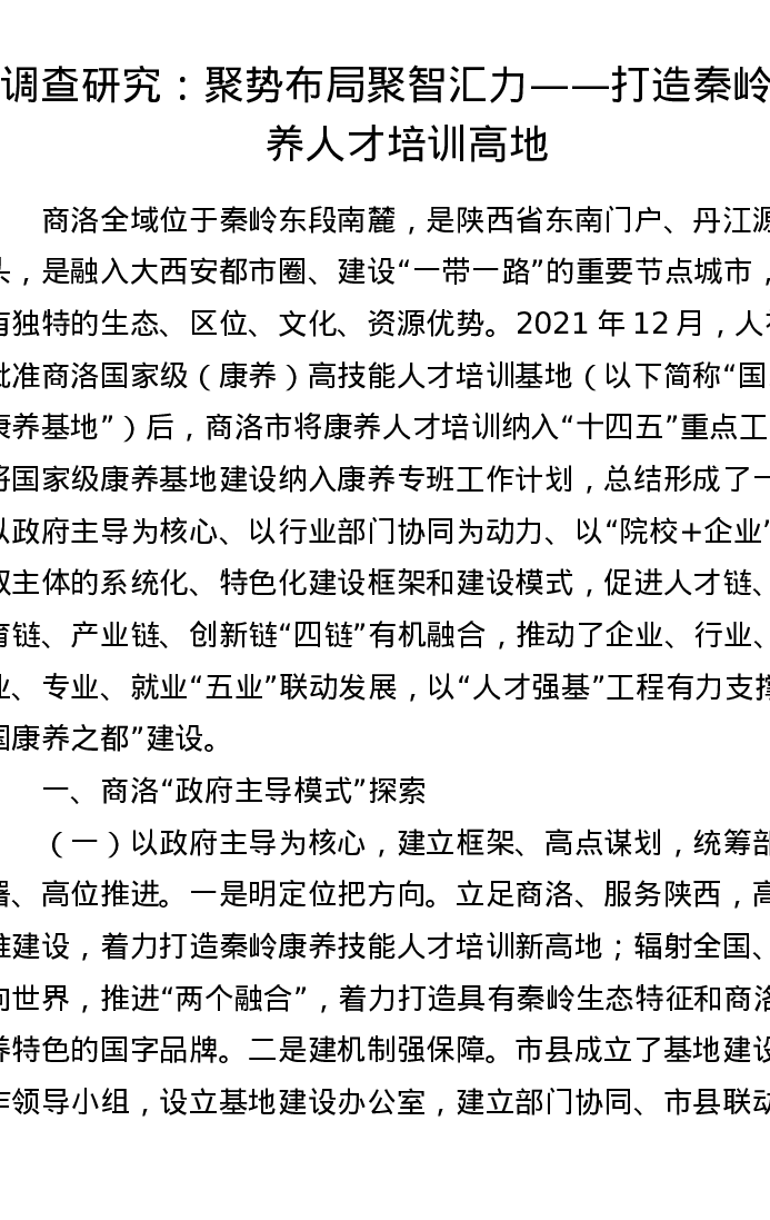 调研报告:聚势布局 聚智汇力——打造秦岭康养人才培训高地
