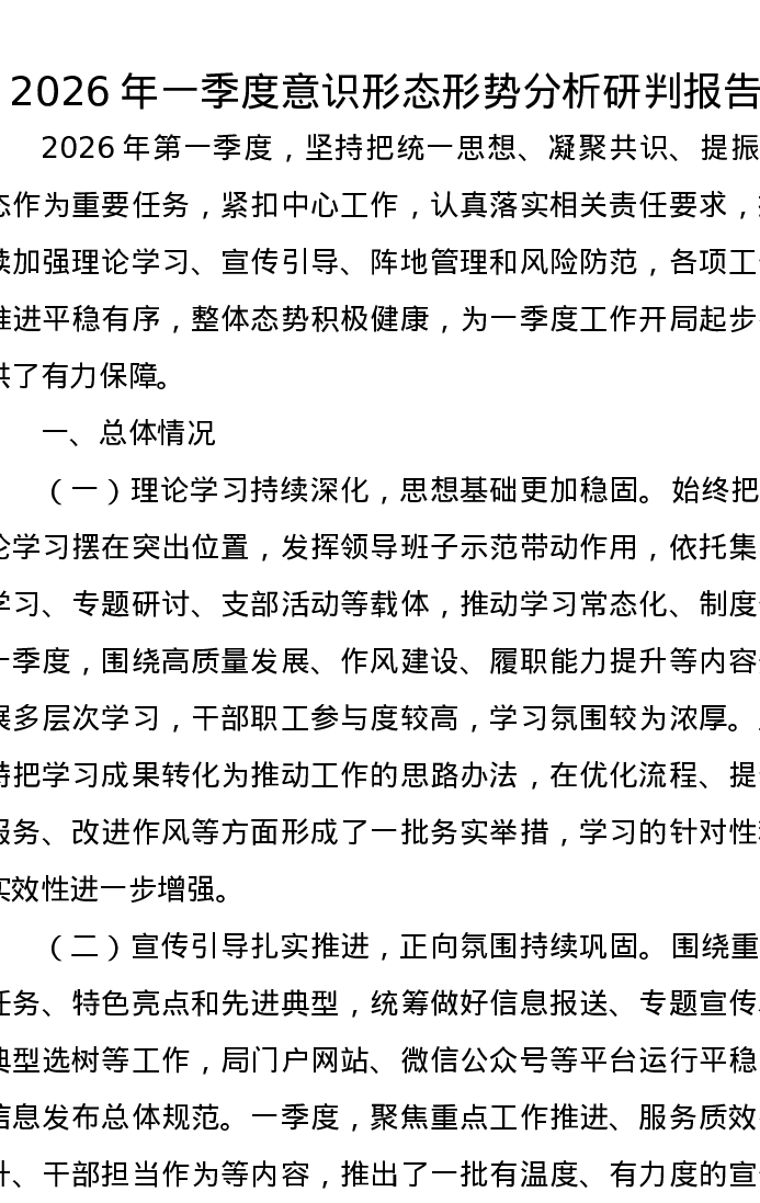 2026年一季度意识形态形势分析研判报告