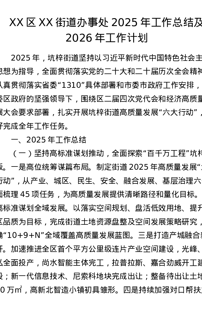 XX区XX街道办事处2025年工作总结及2026年工作计划