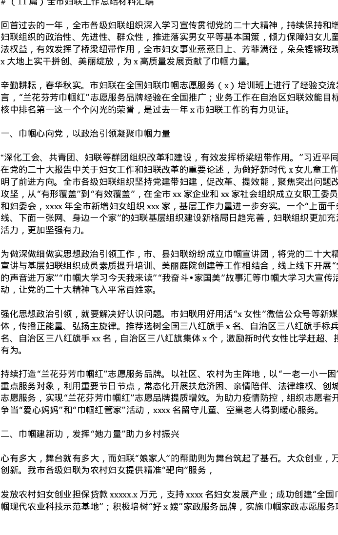 汇编:全市妇联工作总结11篇