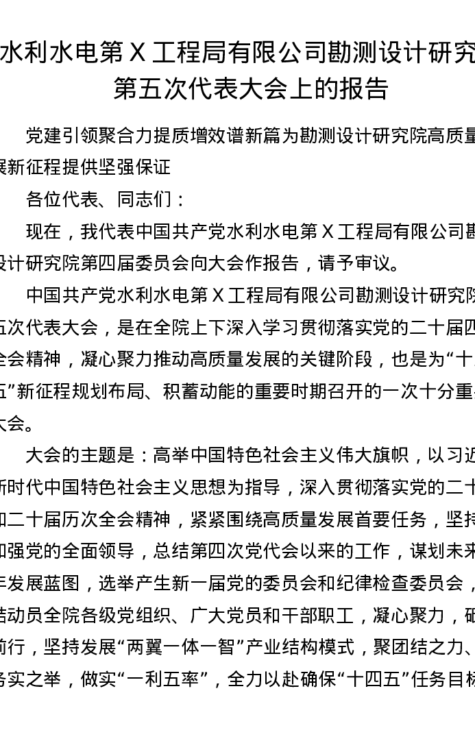 水利水电第X工程局有限公司勘测设计研究院第五次代表大会上的报告