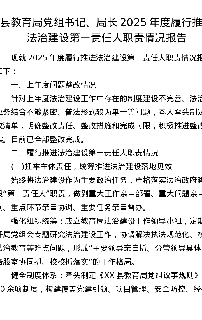 县教育局党组书记、局长2025年度履行推进法治建设第一责任人职责情况报告