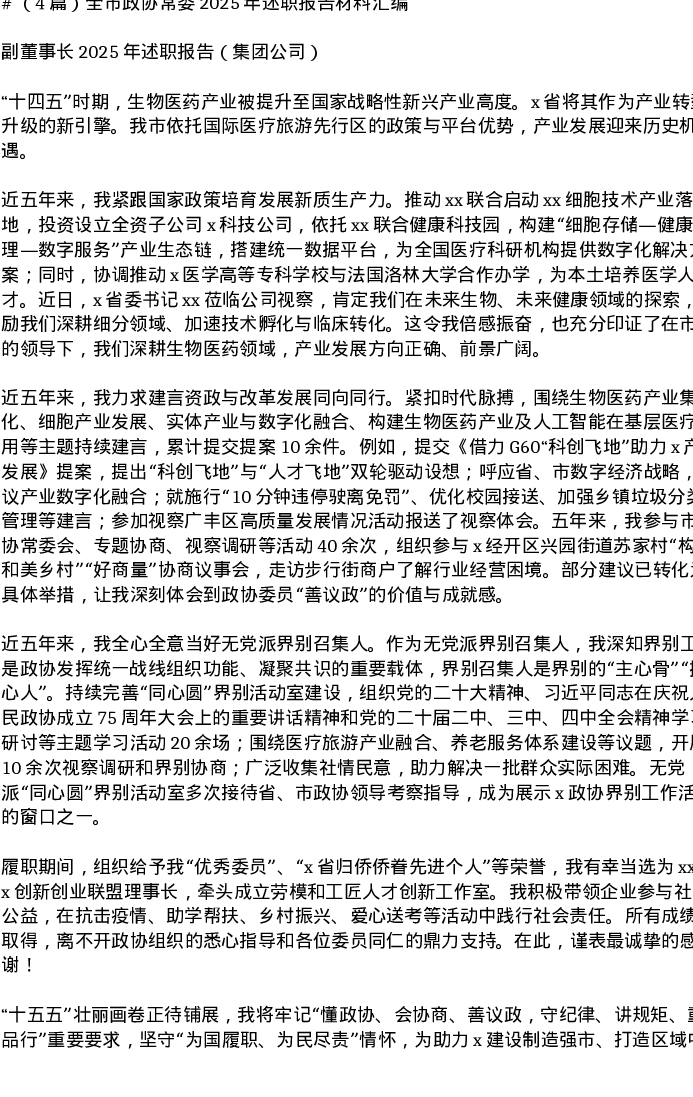 汇编:全市政协常委2025年述职报告4篇
