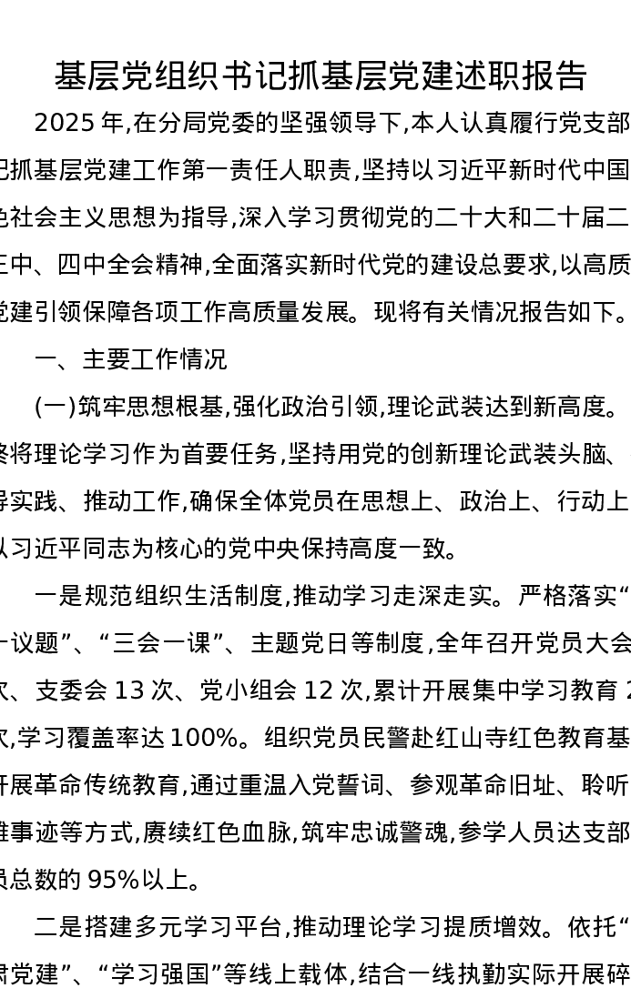 基层党组织书记抓基层党建述职报告