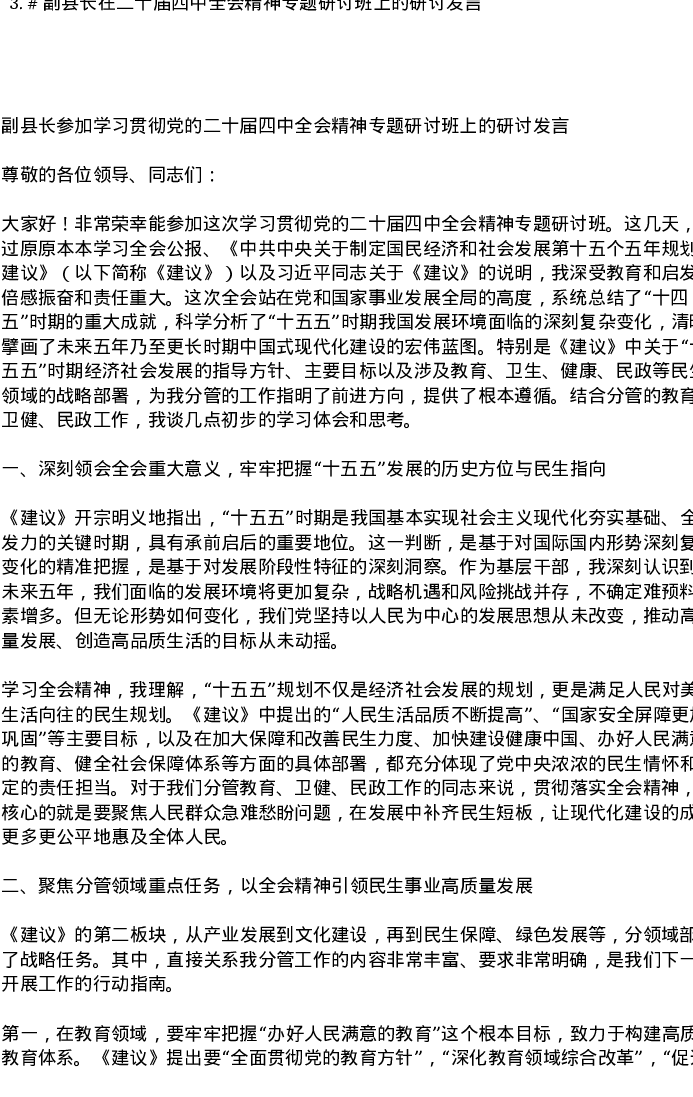 汇编:副县长在二十届四中全会精神专题研讨班上的研讨发言3篇