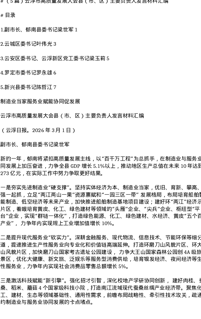 汇编:云浮市高质量发展大会县(市、区)主要负责人发言5篇