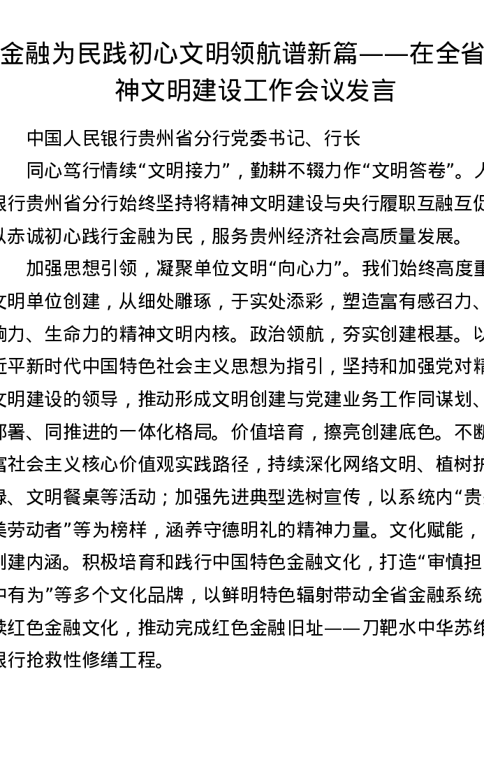 金融为民践初心 文明领航谱新篇——在全省精神文明建设工作会议发言