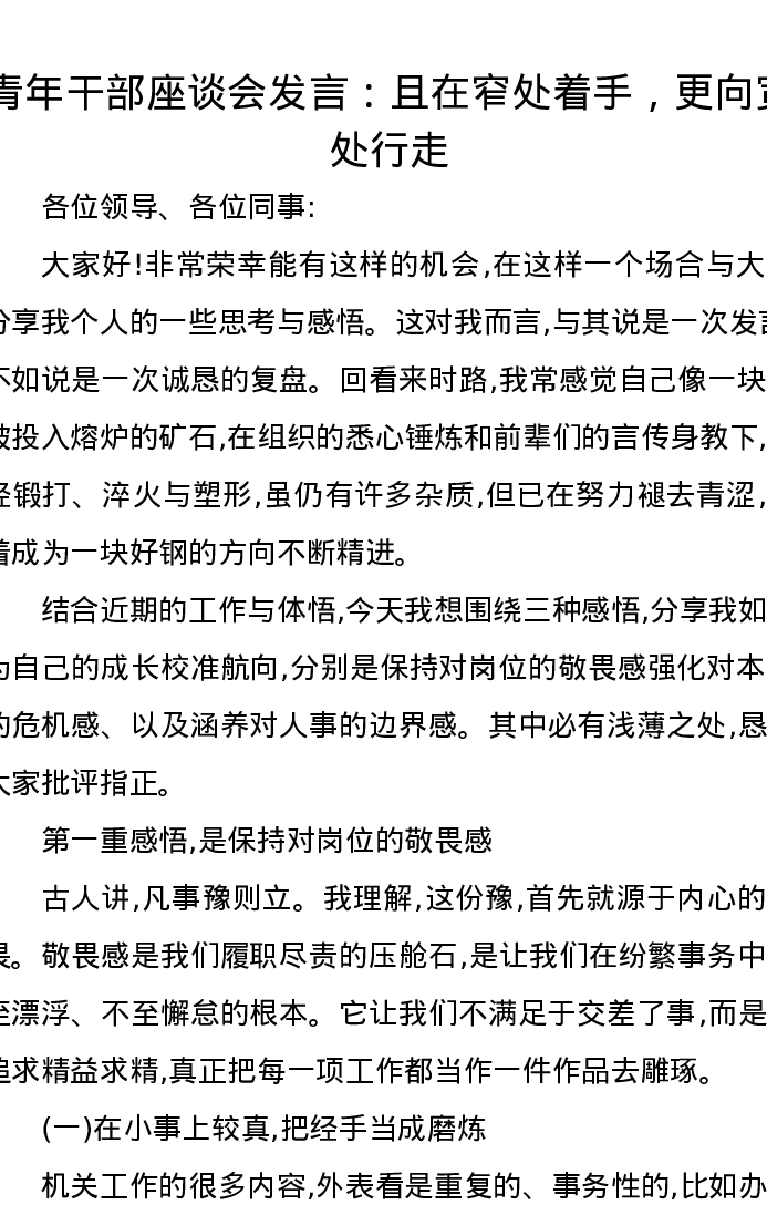 青年干部座谈会发言:且在窄处着手,更向宽处行走