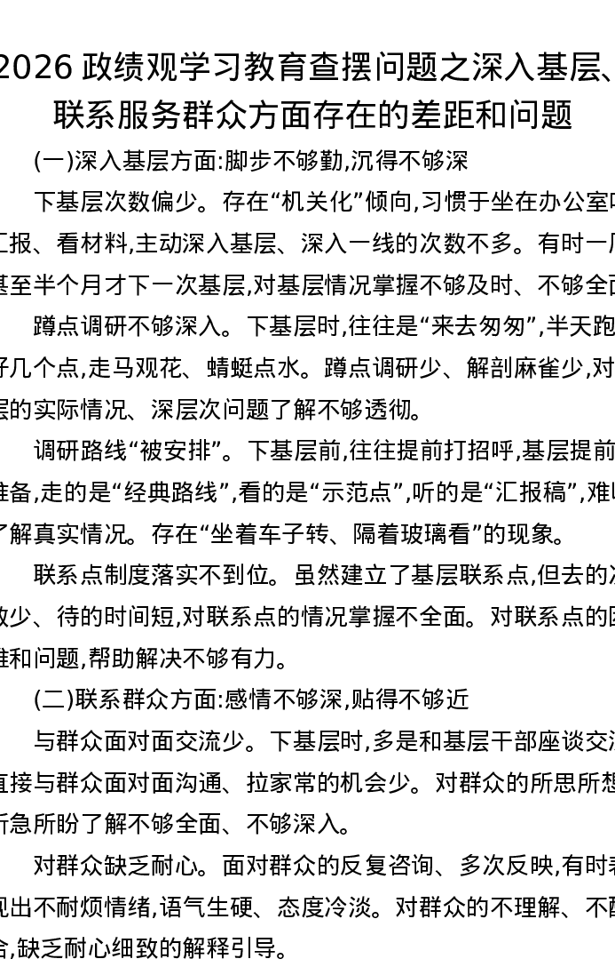 2026ZJG学习教育查摆问题之深入基层、联系服务群众方面存在的差距和问题