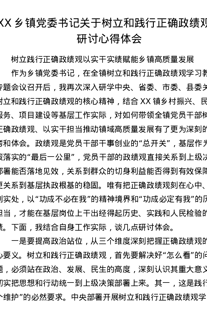 XX乡镇党委书记关于树立和践行正确ZJG的研讨心得体会3