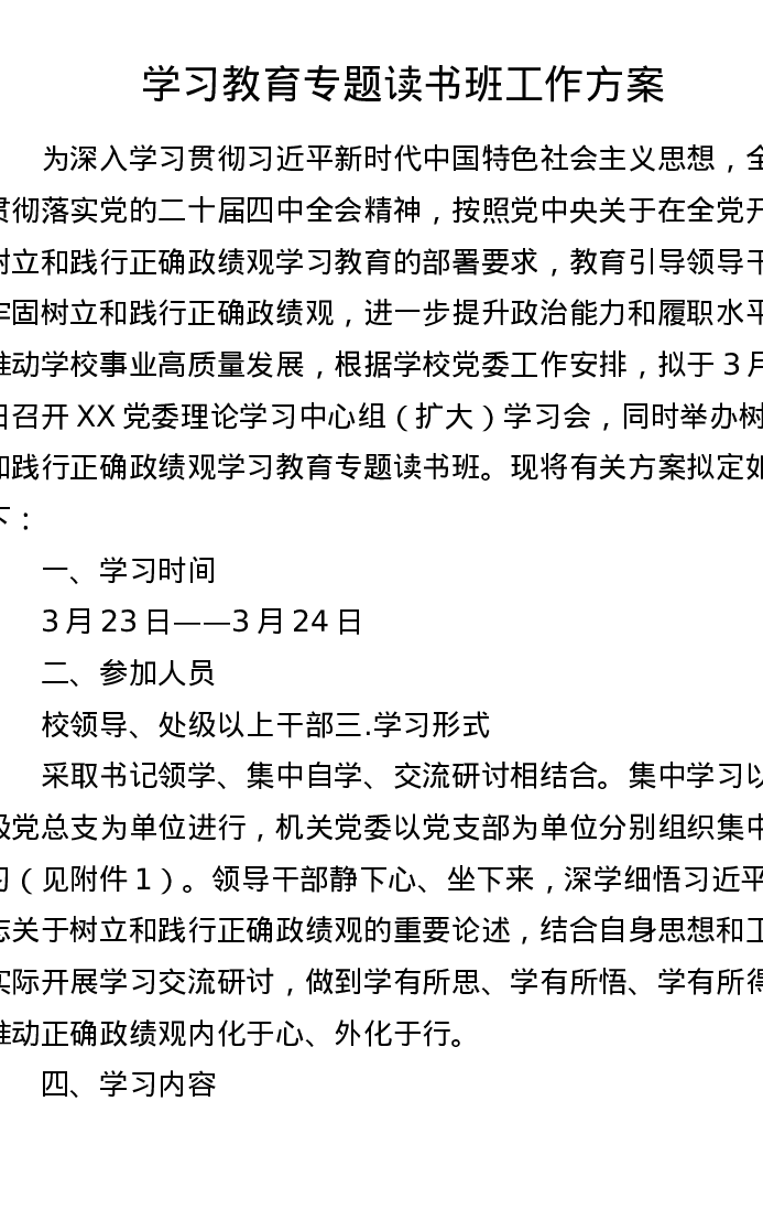 ZJG学习教育专题读书班工作方案
