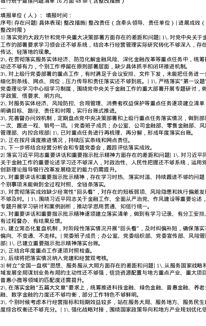 ZJG主题教育银行班子查摆问题清单16方面48条(含整改措施)