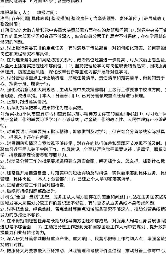 ZJG主题教育银行个人查摆问题清单16方面48条(含整改措施)