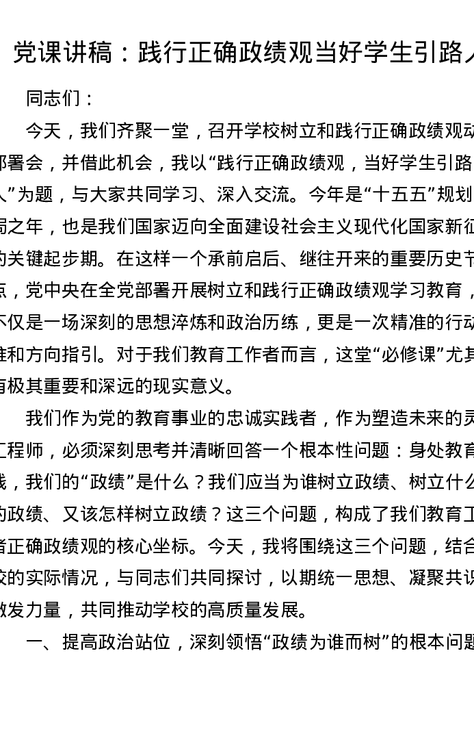 党课讲稿:践行正确ZJG 当好学生引路人