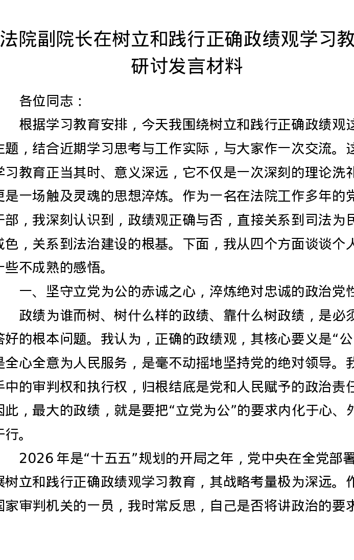 法院副院长在树立和践行正确ZJG学习教育研讨发言材料