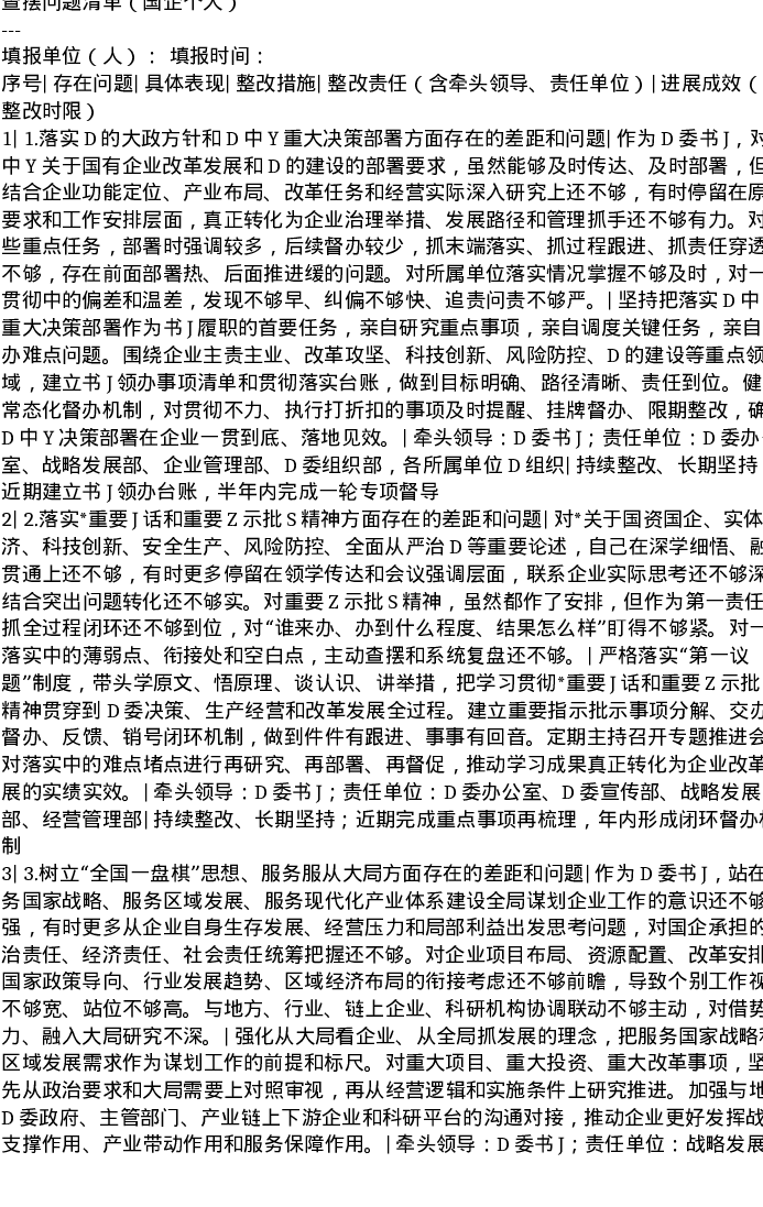 国企党委书记ZJG主题教育查摆问题清单(含措施)