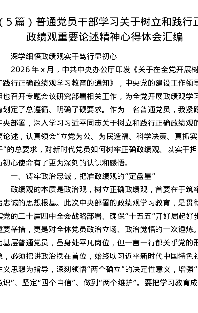 汇编:普通党员干部学习关于树立和践行正确ZJG重要论述精神心得体会5篇
