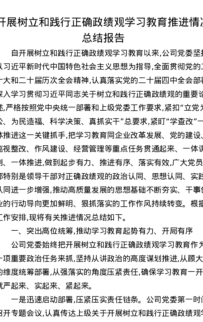 开展树立和践行正确ZJG学习教育推进情况总结报告