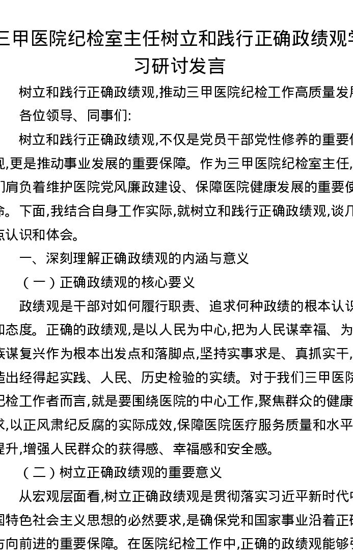 三甲医院纪检室主任树立和践行正确ZJG学习研讨发言