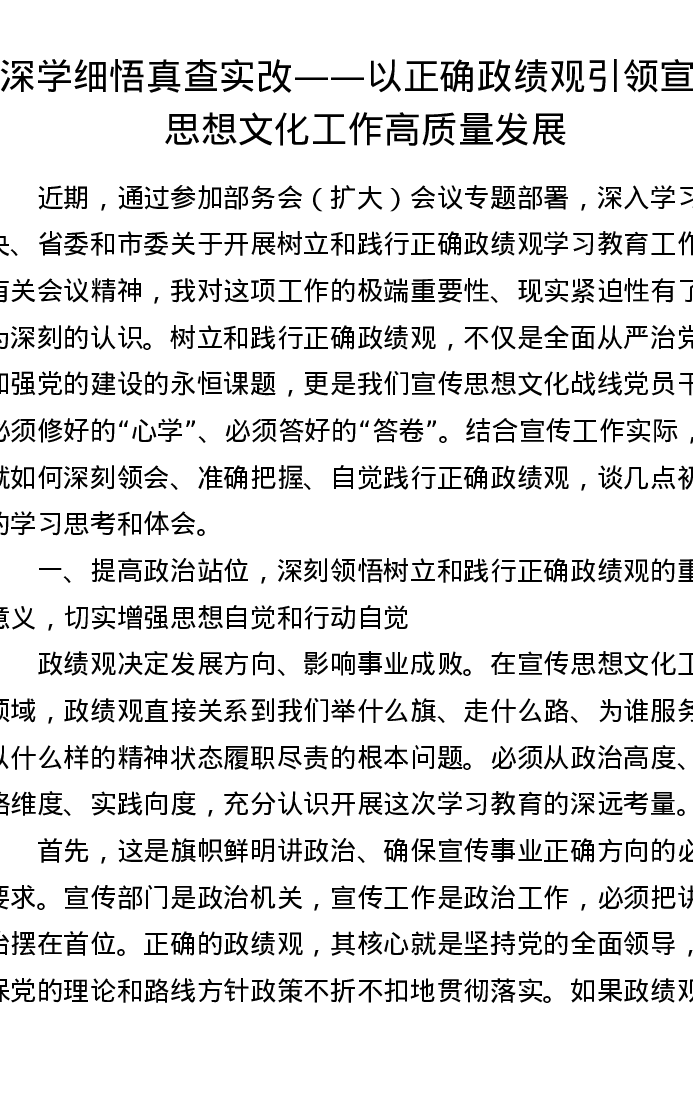 深学细悟 真查实改——以正确ZJG引领宣传思想文化工作高质量发展