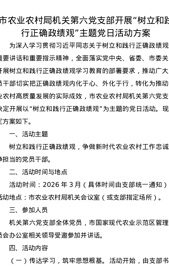 市农业农村局机关第六党支部开展树立和践行正确ZJG主题党日活动方案