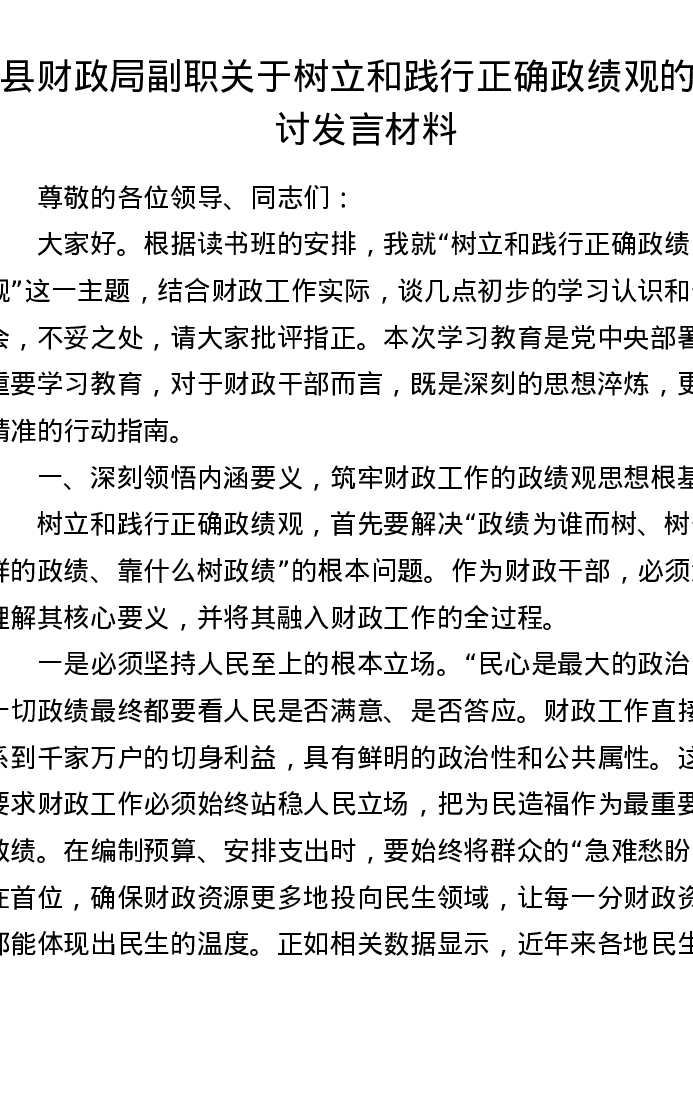 县财政局副职关于树立和践行正确ZJG的研讨发言材料