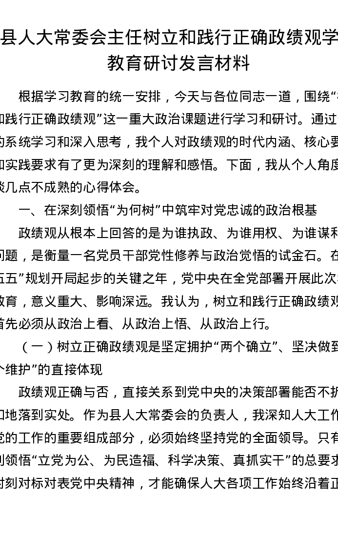 县人大常委会主任树立和践行正确ZJG学习教育研讨发言材料