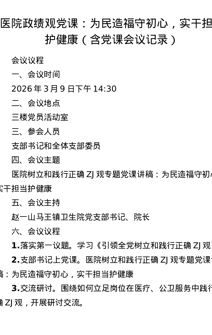 医院ZJG党课:为民造福守初心,实干担当护健康(含党课会议记录)