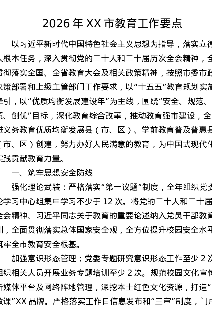 2026年XX市教育工作要点