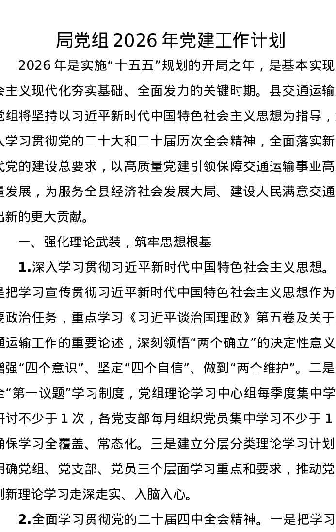 局党组2026年党建工作计划