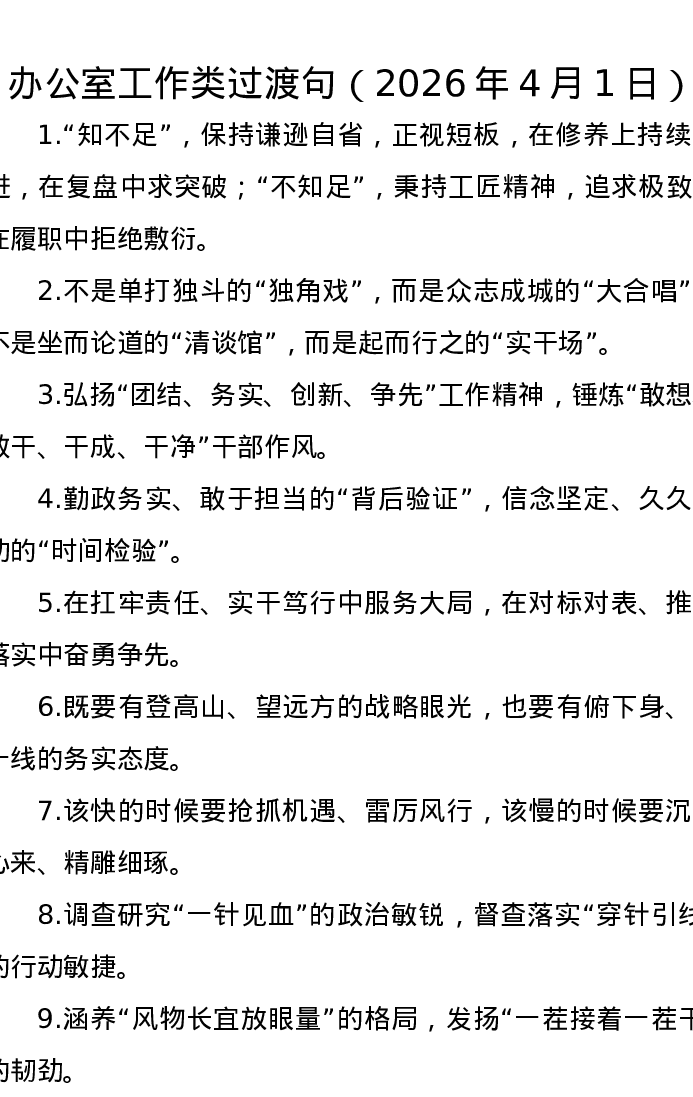 办公室工作类过渡句(2026年4月1日)