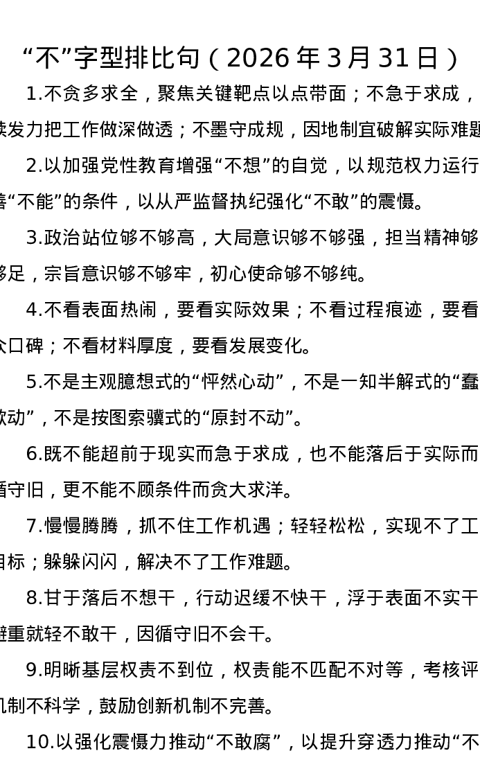不字型排比句(2026年3月31日)