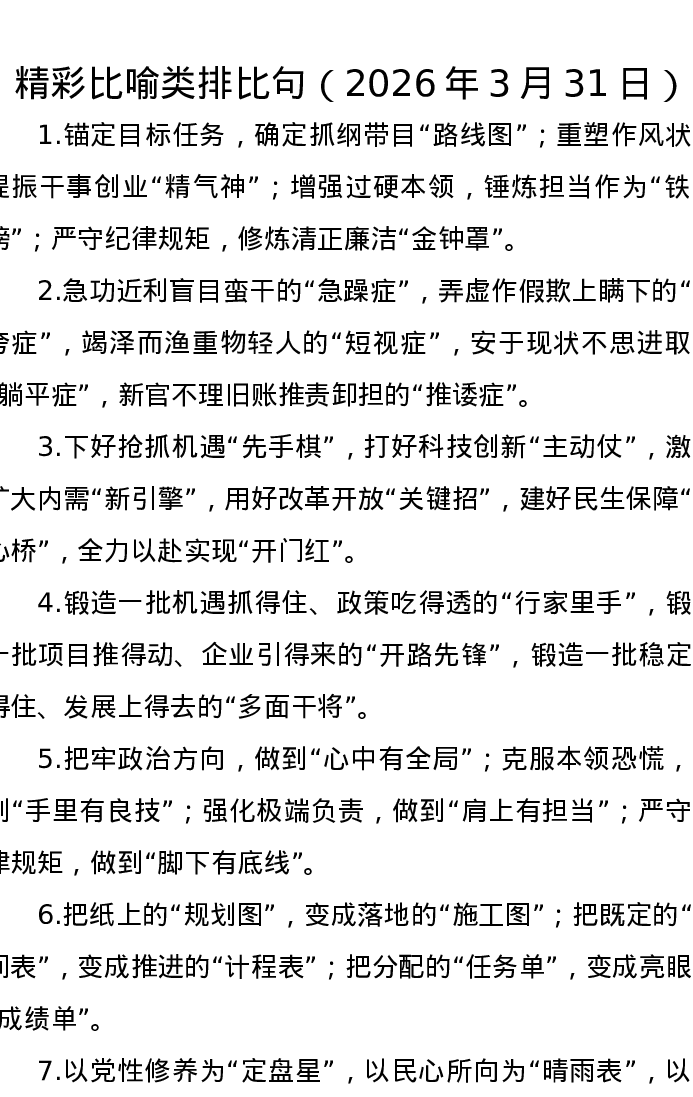 精彩比喻类排比句(2026年3月31日)