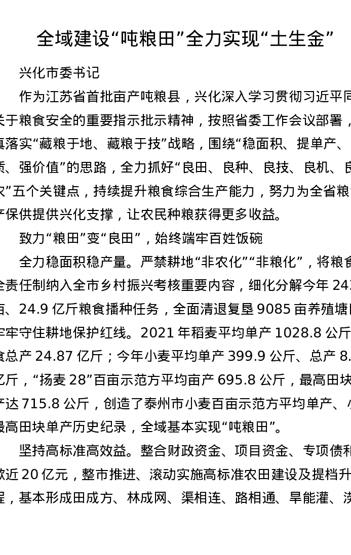 全域建设吨粮田全力实现土生金