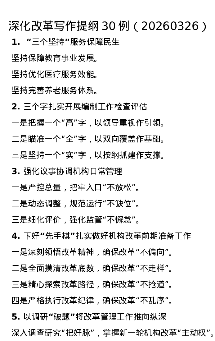 深化改革写作提纲30例(20260326)